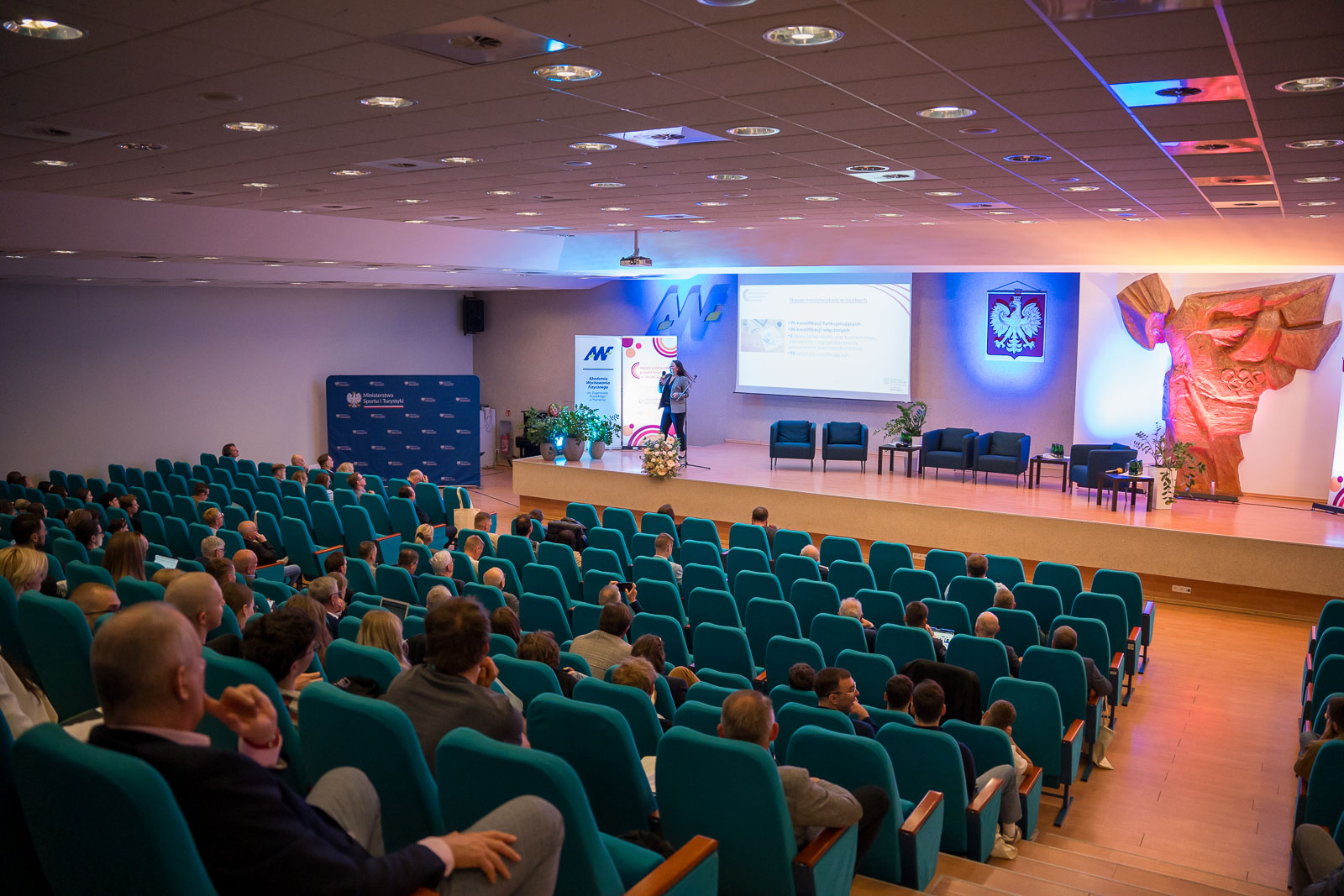 Uroczystego otwarcia konferencji dokonał JM Rektor prof. dr hab. Jacek Zieliński, podkreślając znaczenie rozwoju kompetencji zawodowych oraz współpracy środowiska akademickiego z administracją publiczną i sektorem sportowym. Wydarzenie zgromadziło przedstawicieli administracji publicznej, środowiska akademickiego, związków i organizacji sportowych, jednostek samorządu terytorialnego, klubów sportowych oraz sektora prywatnego. Spotkanie stało się ważną przestrzenią do wymiany doświadczeń, prezentacji dobrych praktyk oraz dyskusji nad przyszłością systemu kwalifikacji i kompetencji w sporcie.