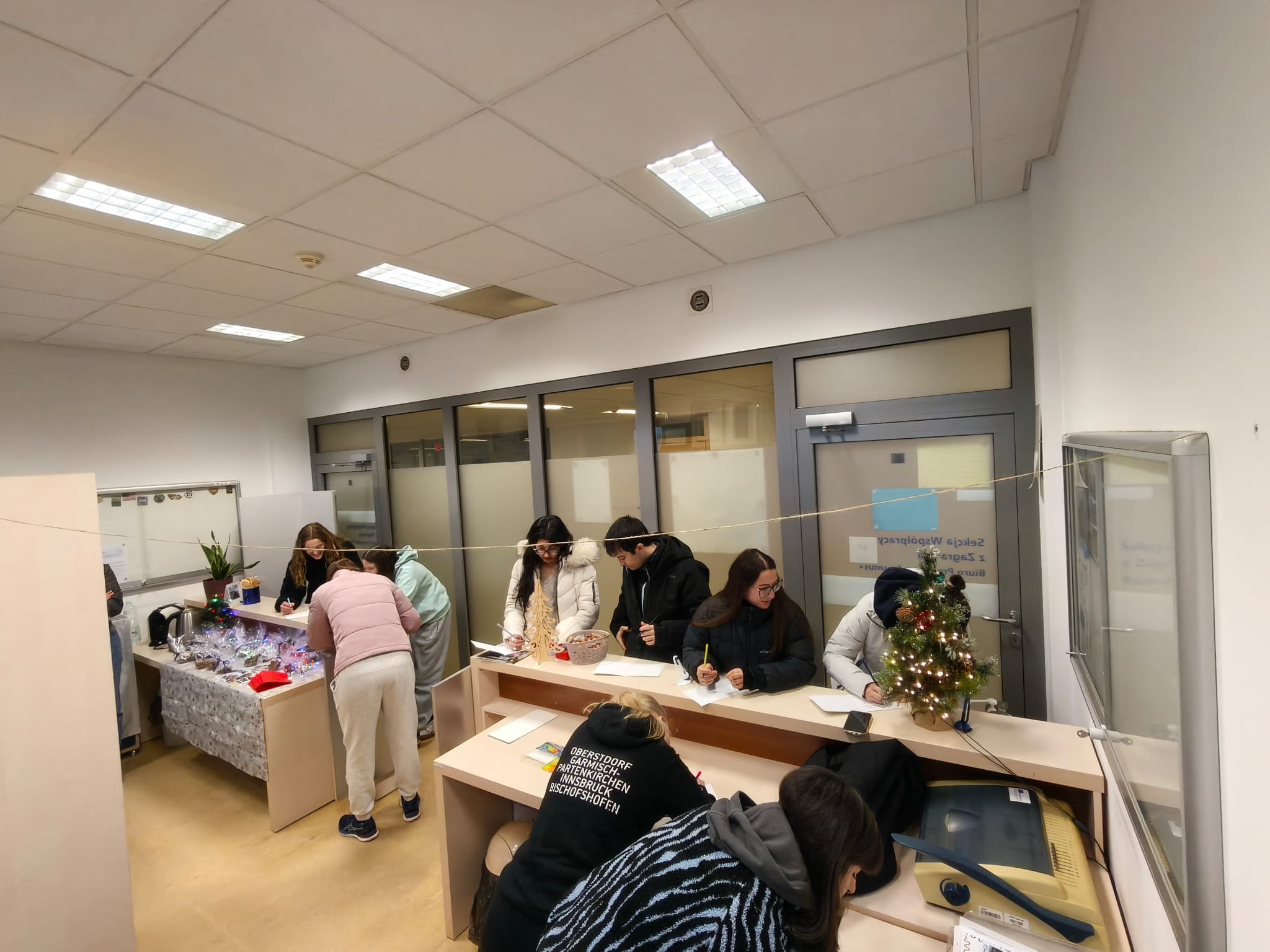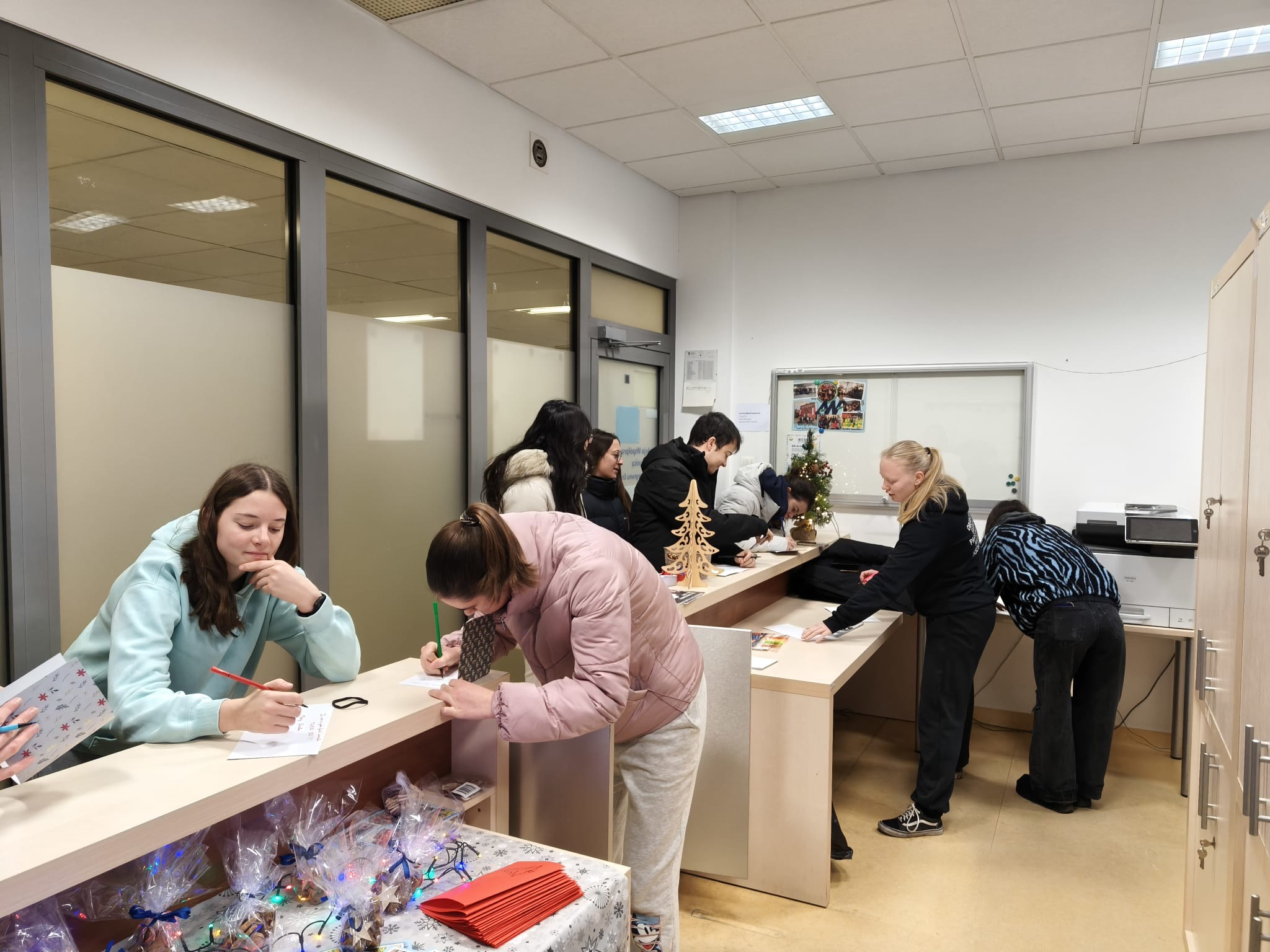 Podczas krótkiego spotkania wręczono drobne upominki, a studenci mieli możliwość zapisania świątecznych życzeń w swoich ojczystych językach na specjalnie przygotowanych kartach. Na pamiątkę otrzymali również kartki z kolażem zdjęć przedstawiających najciekawsze i najbardziej radosne momenty ich pobytu w Polsce. Było ciepło, serdecznie i bardzo międzynarodowo – dokładnie tak, jak lubimy w SWZ.