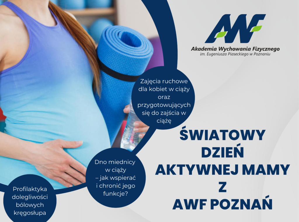 Serdecznie zapraszamy wszystkie przyszłe mamy, mamy w ciąży fizjologicznej oraz osoby wspierające do udziału w wyjątkowym wydarzeniu – Światowym Dniu Aktywnej Mamy z AWF Poznań, które odbędzie się 11 maja 2025 roku w godz. 10:00–13:30 w naszej Akademii (ul. Królowej Jadwigi 27/39, Hala Dydaktyczno-Sportowa, sala 201).