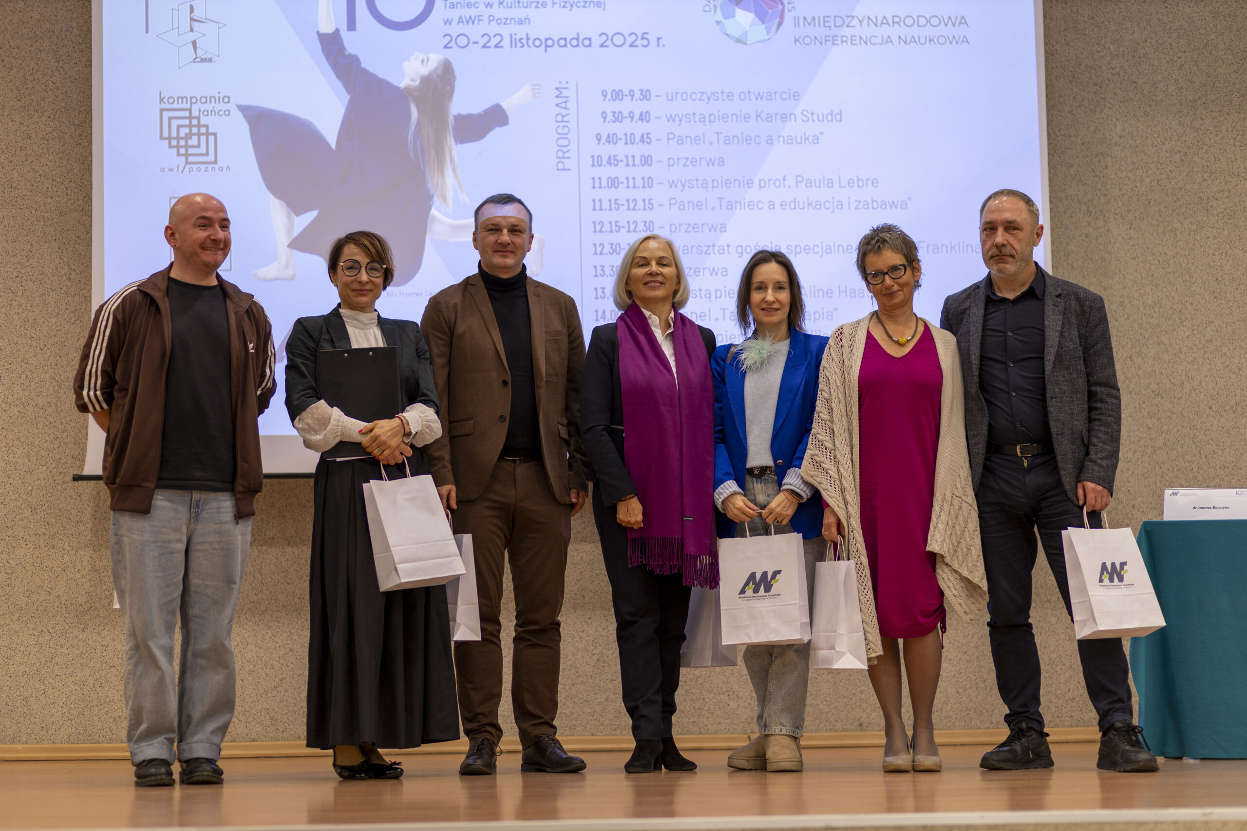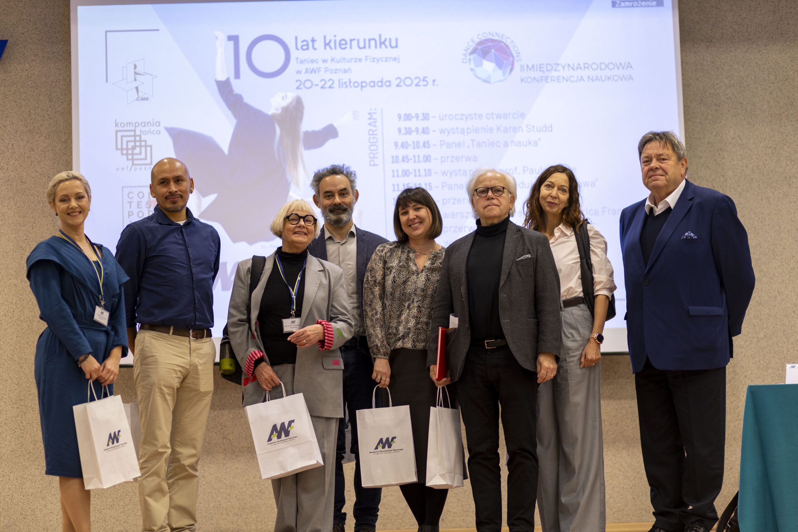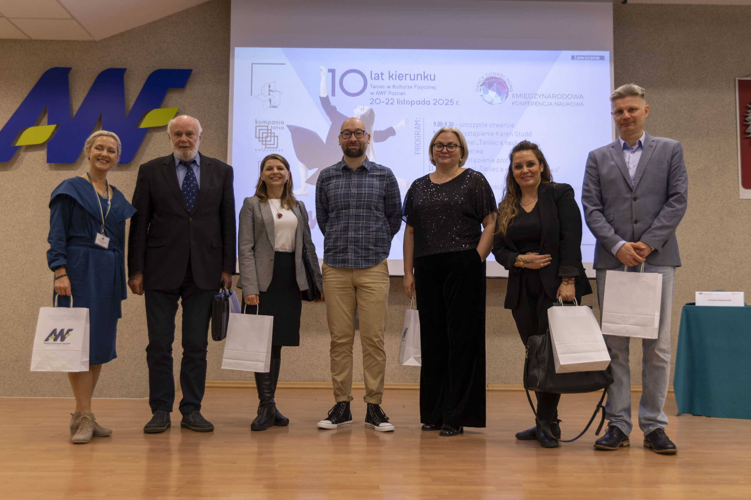 Jubileusz rozpoczęła II Międzynarodowa Konferencja Naukowa „Dance Connections”, która odbyła się 20 listopada w Auli AWF Poznań. Uczestnicy wzięli udział w uroczystym otwarciu obchodów oraz w sesjach panelowych z udziałem badaczy i praktyków tańca z Polski i zagranicy. Dyskusje naukowe stały się przestrzenią do prezentacji najnowszych badań oraz wymiany perspektyw na temat rozwoju tańca w kulturze fizycznej.