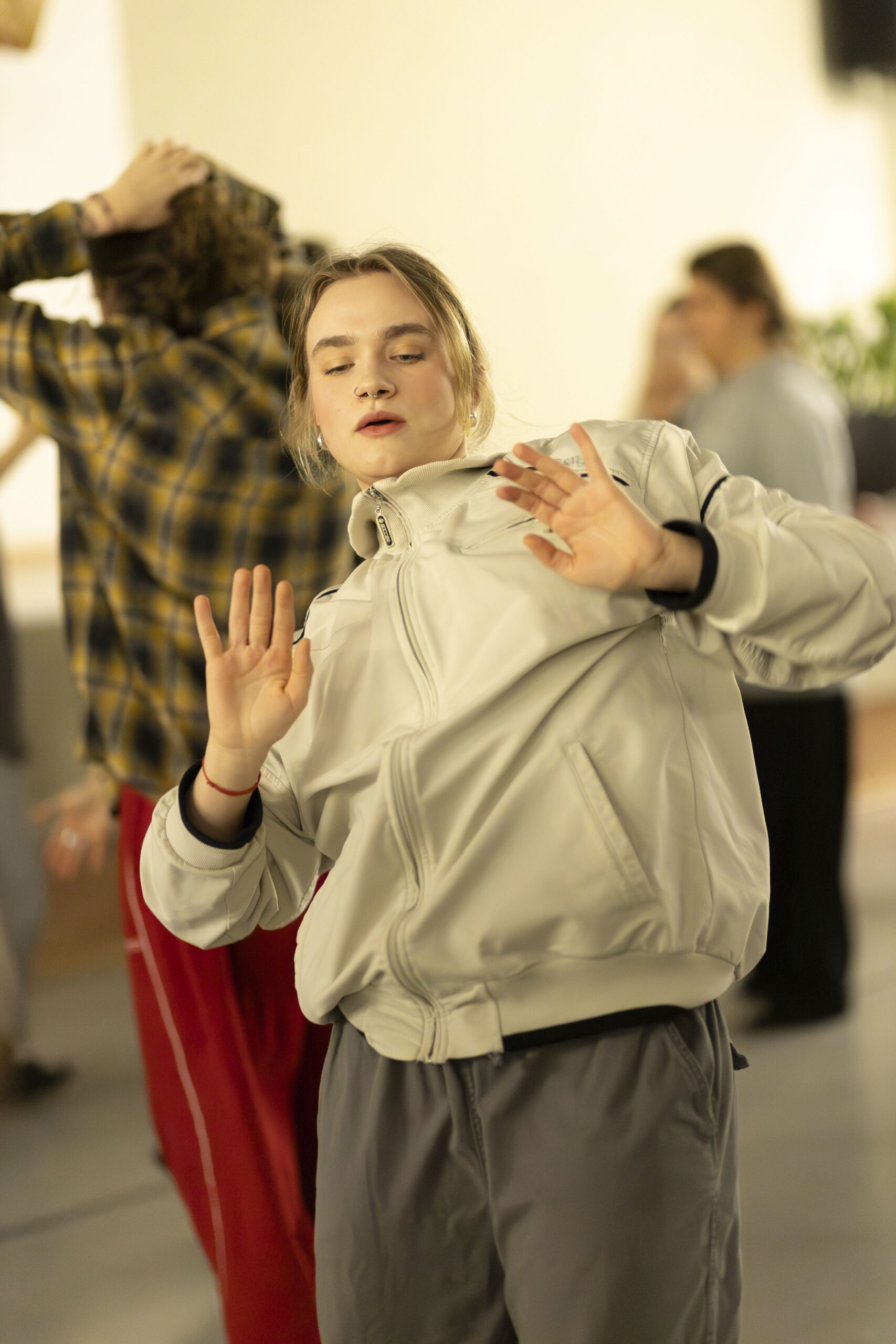 Po południu odbył się blok intensywnych warsztatów tanecznych prowadzonych przez zaproszonych artystów i pedagogów. Zajęcia, które miały miejsce w sali przy Drodze Dębińskiej zgromadziły uczestników zainteresowanych praktycznym doświadczaniem różnych technik tanecznych.